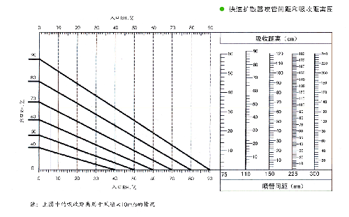 相交,再向右作水平線,得110mm管間距的吸收距離為46cm,左右能滿足吸收距離,所以初選為110mm間距。