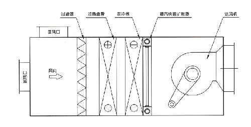 蒸汽快速擴散器在空調箱內(nèi)安裝示意圖