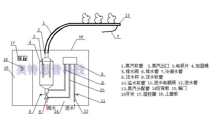 濕度控制系統(tǒng):分為開關(guān)式和比例式(PID)兩種。并可以選擇帶有RS485通訊接口的型式。 PCS自清潔系統(tǒng):利用專用PCS氣泵向加濕桶內(nèi)泵氣,使桶內(nèi)水始終處于滾動(dòng)狀態(tài),延緩水垢的產(chǎn)生,延長加濕桶的使用壽命。